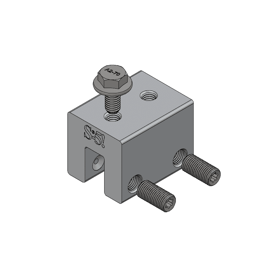 The S-5-S (“S” stands for snap-lock) is a non-penetrating, standing seam metal roof (SSMR) clamp. The S is designed for most popular vertical snap-together profiles -- typically with vertical dimensions of 1.5” (38 mm) and 1.75” (44 mm).
