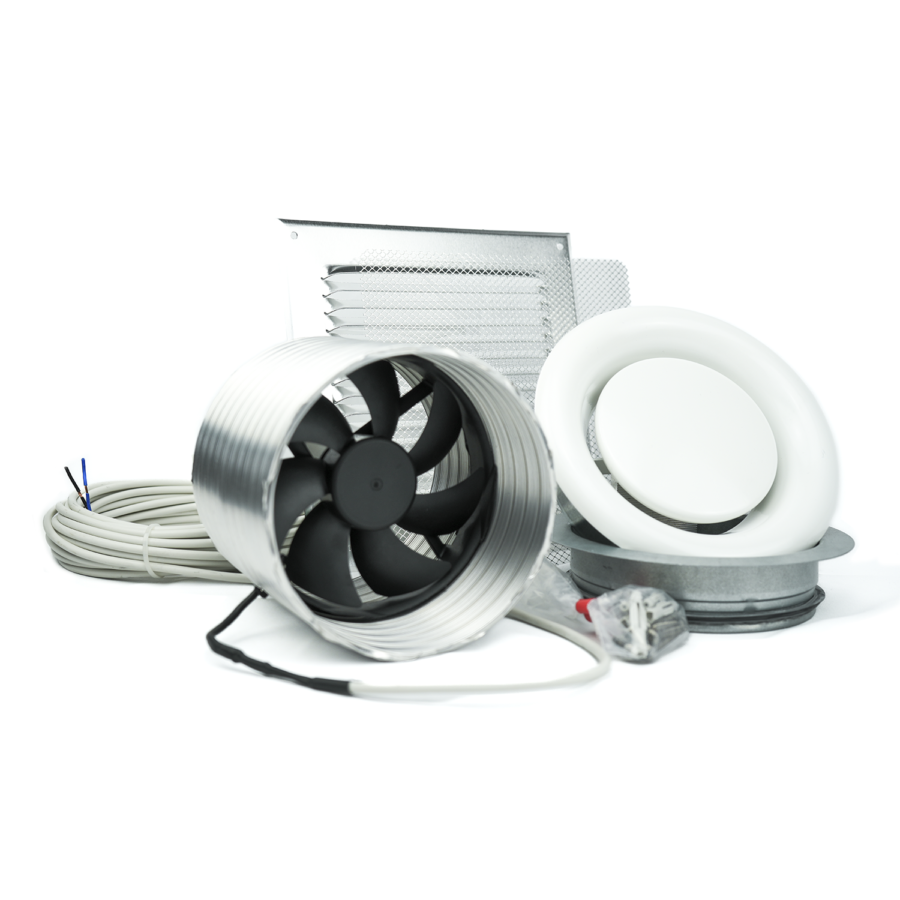 This set is particularly ideal for a tightly insulated house, moisture-prone buildings or to achieve with optimized air exchange with SolarVenti. At least one ventilation kit is included in SolarVenti installations for the basement.